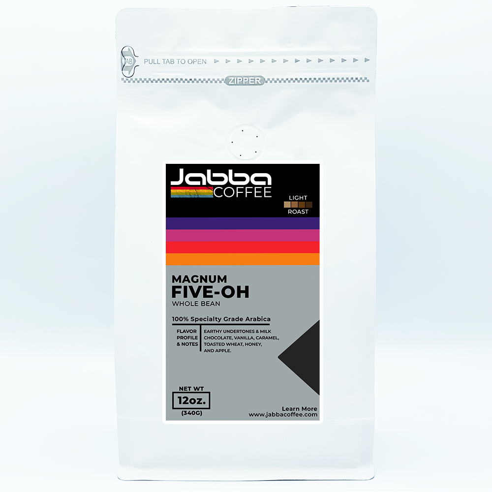 A blend of Brazil, Colombia and Rwanda beans roasted to a perfect light profile. Break free from the everyday distractions and be transported to a tropical island of great adventures in every corner or in every cup. If you're tired of drinking that same old colored hot water that you drink every day, give this Hawaiian blend a try. Investigate it yourself! It would be a crime not to try it. Go ahead and try this badass coffee. With a badass taste. It's Magnum Five-OH so good!